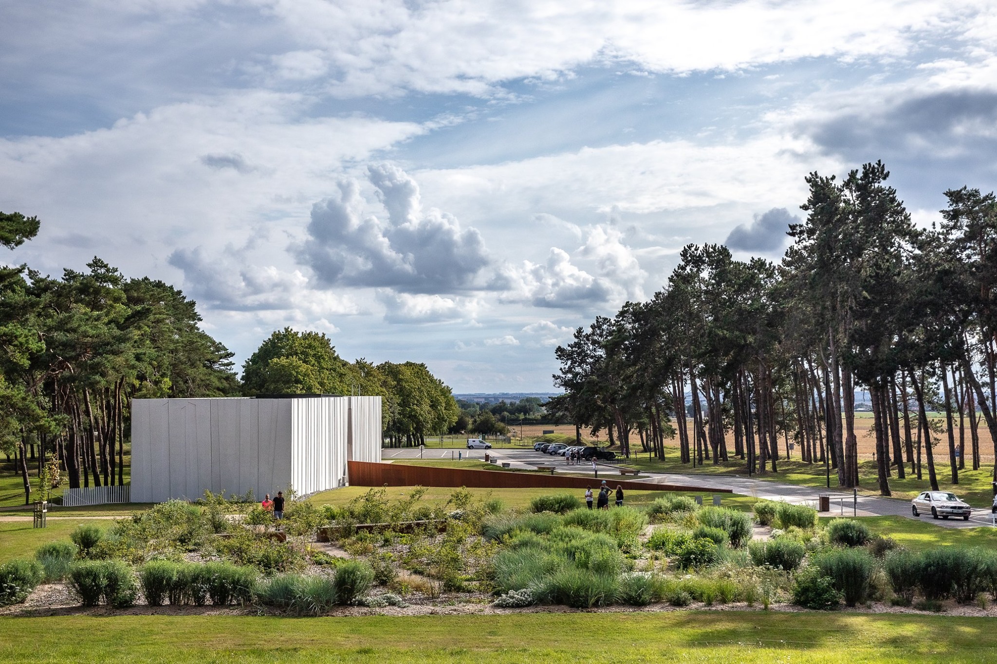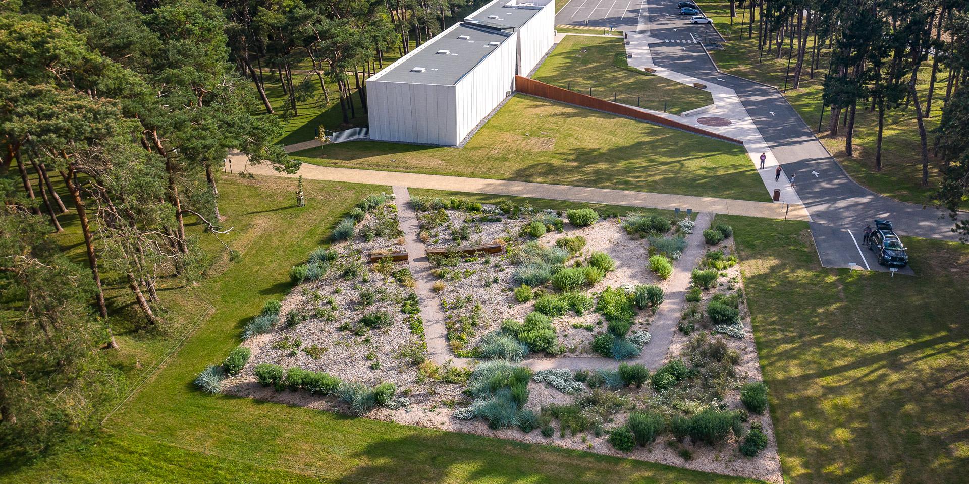 Implanté sur le site du Mémorial national du Canada à Vimy, l’installation Drapeau a été choisi pour représenter le Canada. C’est un jardin inspiré de la forêt boréale et se compose de plantes indigènes du Canada. Il fait écho à la nordicité et à la symbolique du drapeau blanc. Il se divise en trois espaces traversés par un chemin blanc. Au commencement se trouve Les Aurores Boréales. C’est le premier monde. La première voile-graminée. Elle est légère, étincelante, mouvementée et lumineuse comme un champ fleuri. À l’intérieur d’un périmètre rectangulaire se trouve la Voie Lactée. Elle se compose d’une cinquantaine d’amélanchiers canadensis. C’est un espace où gravitent des milliers d’étoiles, des mondes de sous-bois, des fougères-nébuleuses et des perles blanches. Ce monde est scintillant et apaisant. Au centre se trouve le troisième monde. C’est la Danse. Il abrite un hêtre centenaire tombé sur le terrain de Vimy et recyclé pour le jardin en assises. Comme un spectateur du passage de millions de visiteurs en quête de paix depuis un siècle sur le site, l’arbre vibre de témoignages chargés d’histoires. C’est un lieu de rencontres et de contemplation.