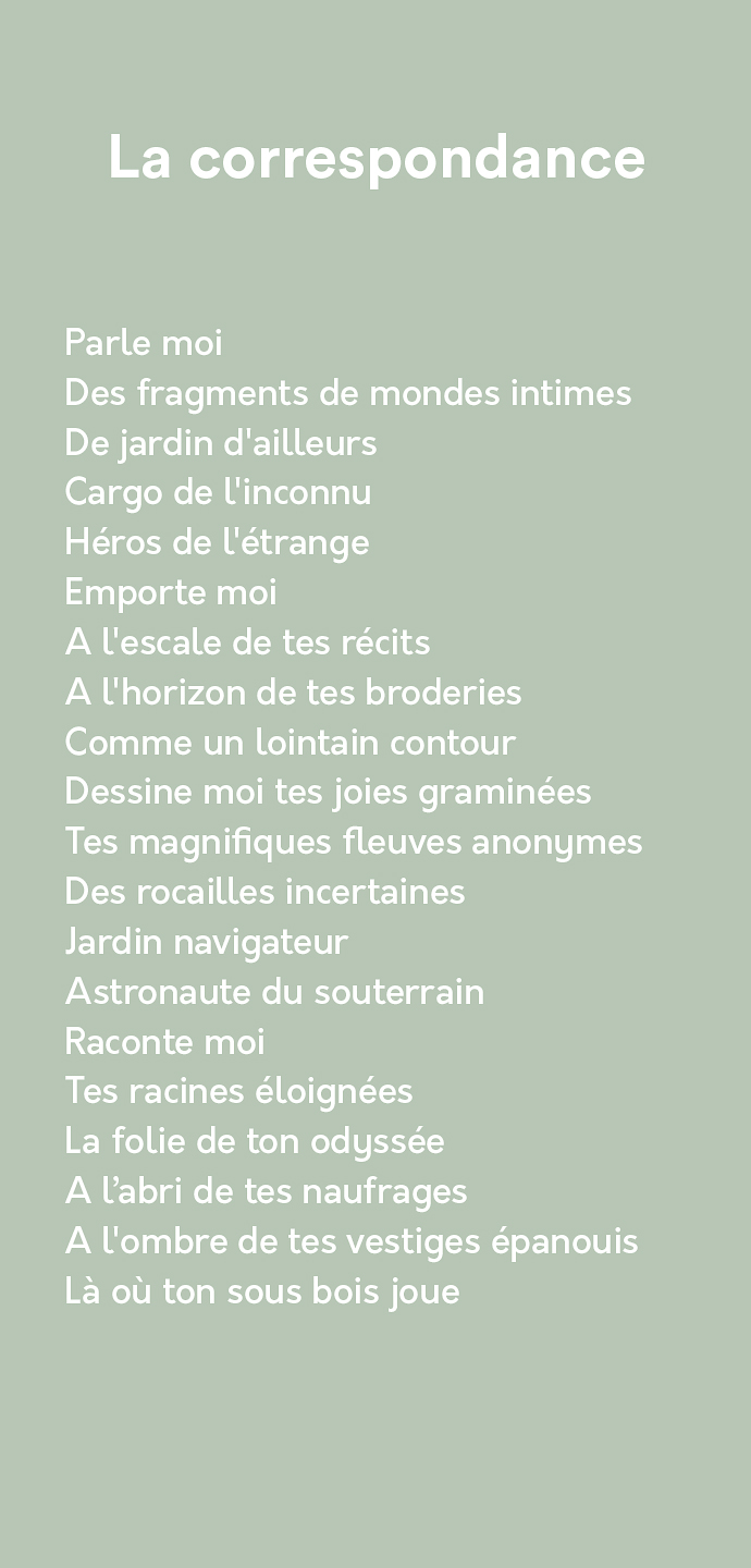 Ce jardin est une succession de vagues, telles des histoires que l’on s’échange et se partage. Tout près de soi, il devient comme un livre de poche, une carte postale à protéger ou un inestimable trésor toujours en mouvement.