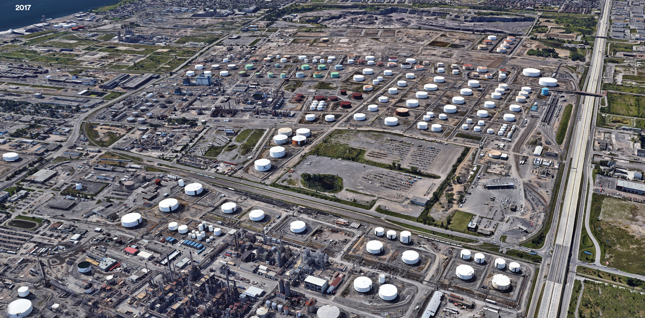 Il était une fois en 2017. Il faut s’être penché sur la carte de l’est de Montréal pour comprendre l’ampleur du territoire occupé par les raffineries. Ce sont des rues, des quartiers, des édifices à bureaux, des tours étranges et torsadées, des réservoirs blancs et circulaires posés un peu partout comme les pions d’un jeu de dames pour géants. C’est une ville dans la ville. Un espace clôturé, une cité interdite. Repenser l’aménagement de ce territoire c’est repenser 20 km carrés de surfaces, des centaines de bâtiments et de structures enchevêtrées aux travers des milliers de kilomètres de tuyaux.