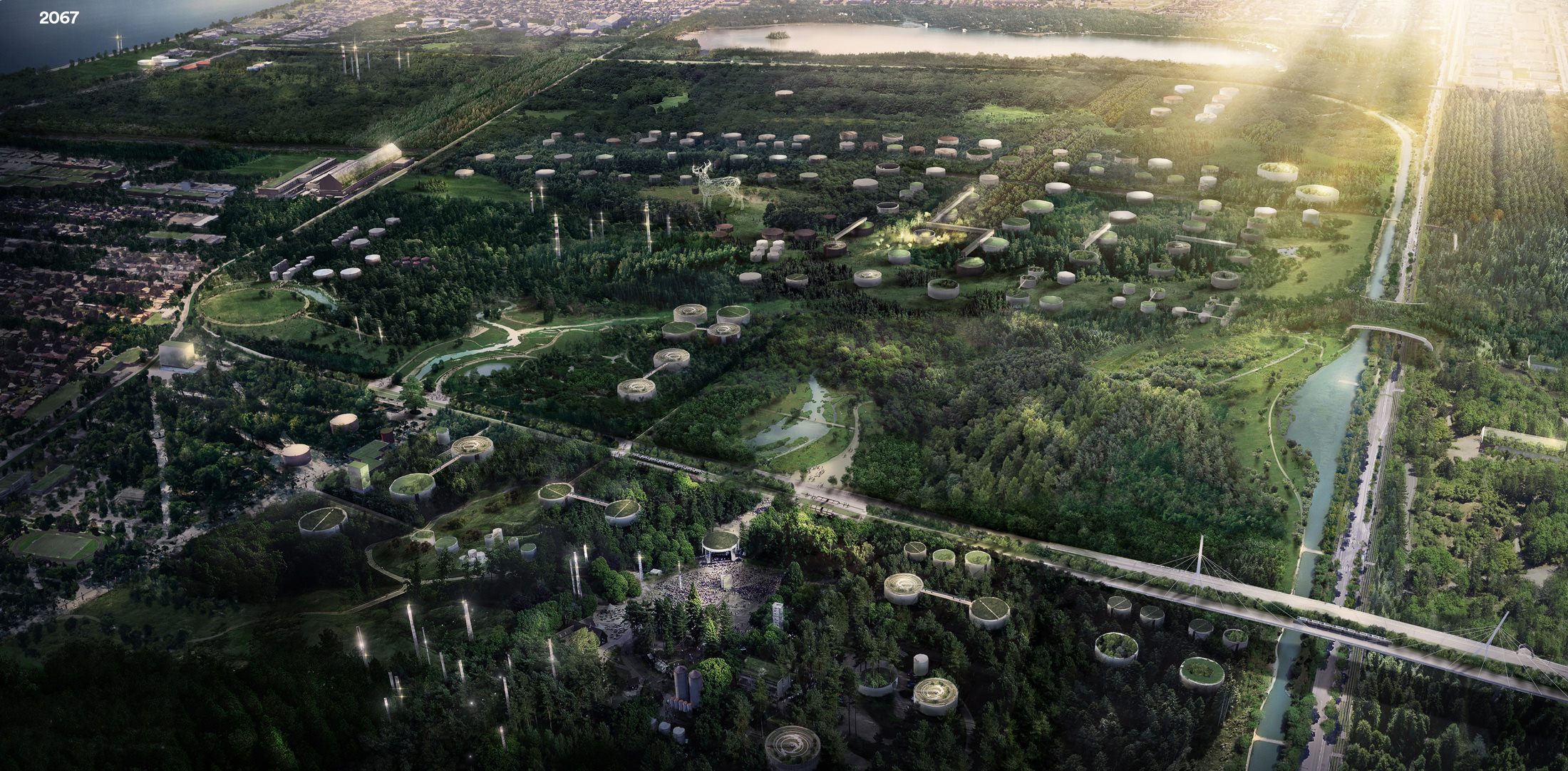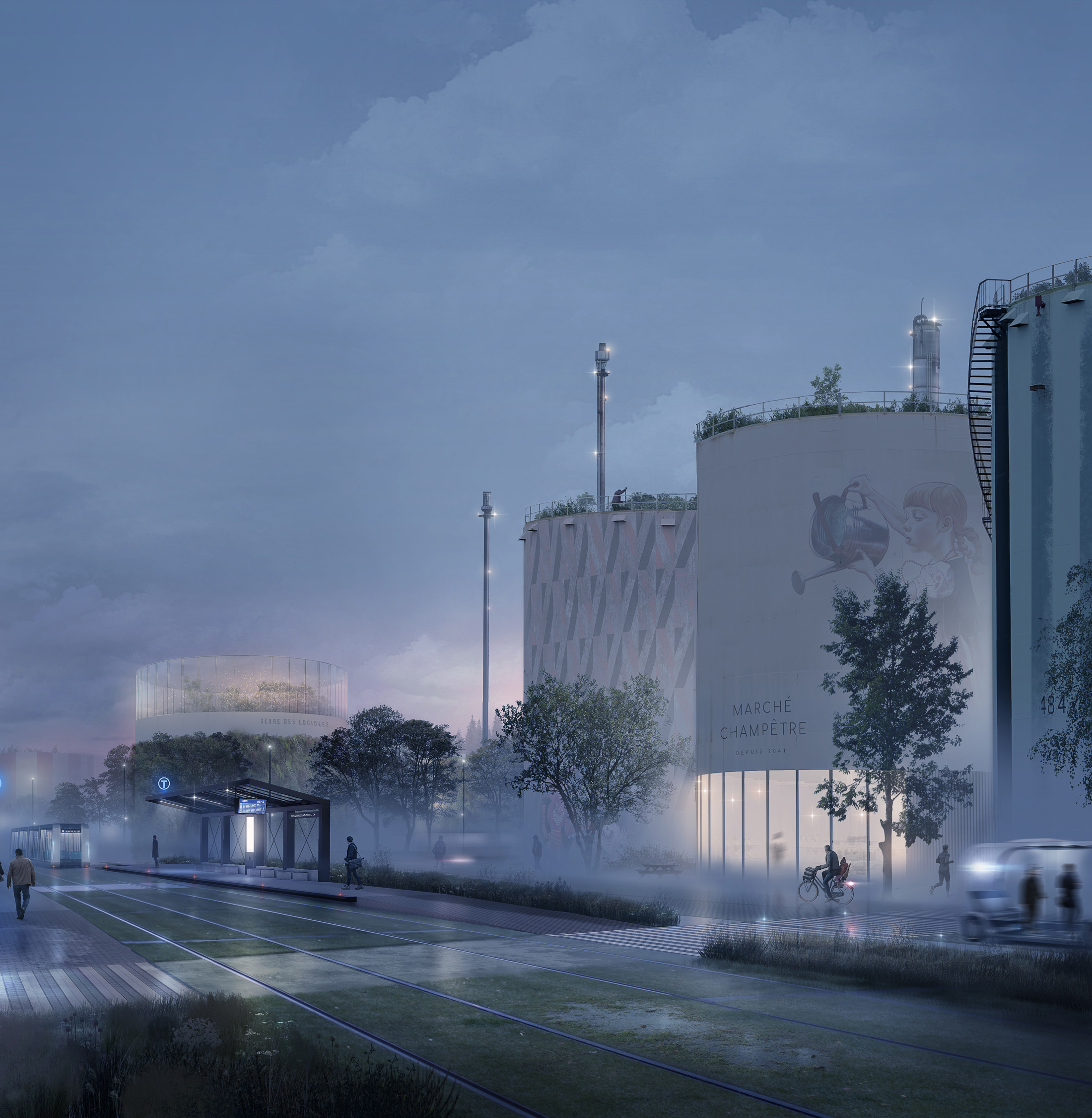 Notre fable décloisonne. Elle connecte au reste de la collectivité. Comme un lieu phare, elle permet l’exploration d’un vaste territoire ouvert sur la ville, traversable et accessible par de nombreux transports autonomes. Notre conte est un laboratoire vivant toujours en mouvement. Il redonne de la lumière grâce à l’eau omniprésente. Avec la création d’un canal, de marais filtrants, de noues naturalisées, de berges aménagées et de drainages des eaux pluviales, le site prend racine à nouveau. La lumière revient grâce à la fertilité. C’est seulement après la décontamination des sols par les végétaux que les forêts sont arrivées. Des prairies, des fruitiers, des forêts denses inaccessibles et préservées, des forêts nourricières et structurées se côtoient sur cet immense nature retrouvée.