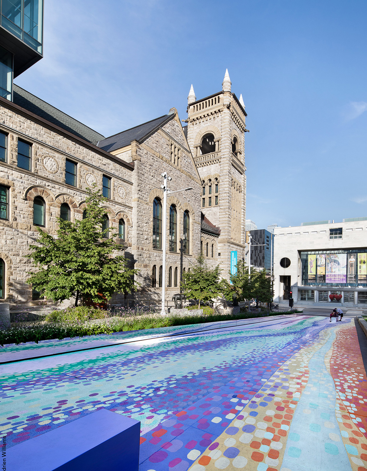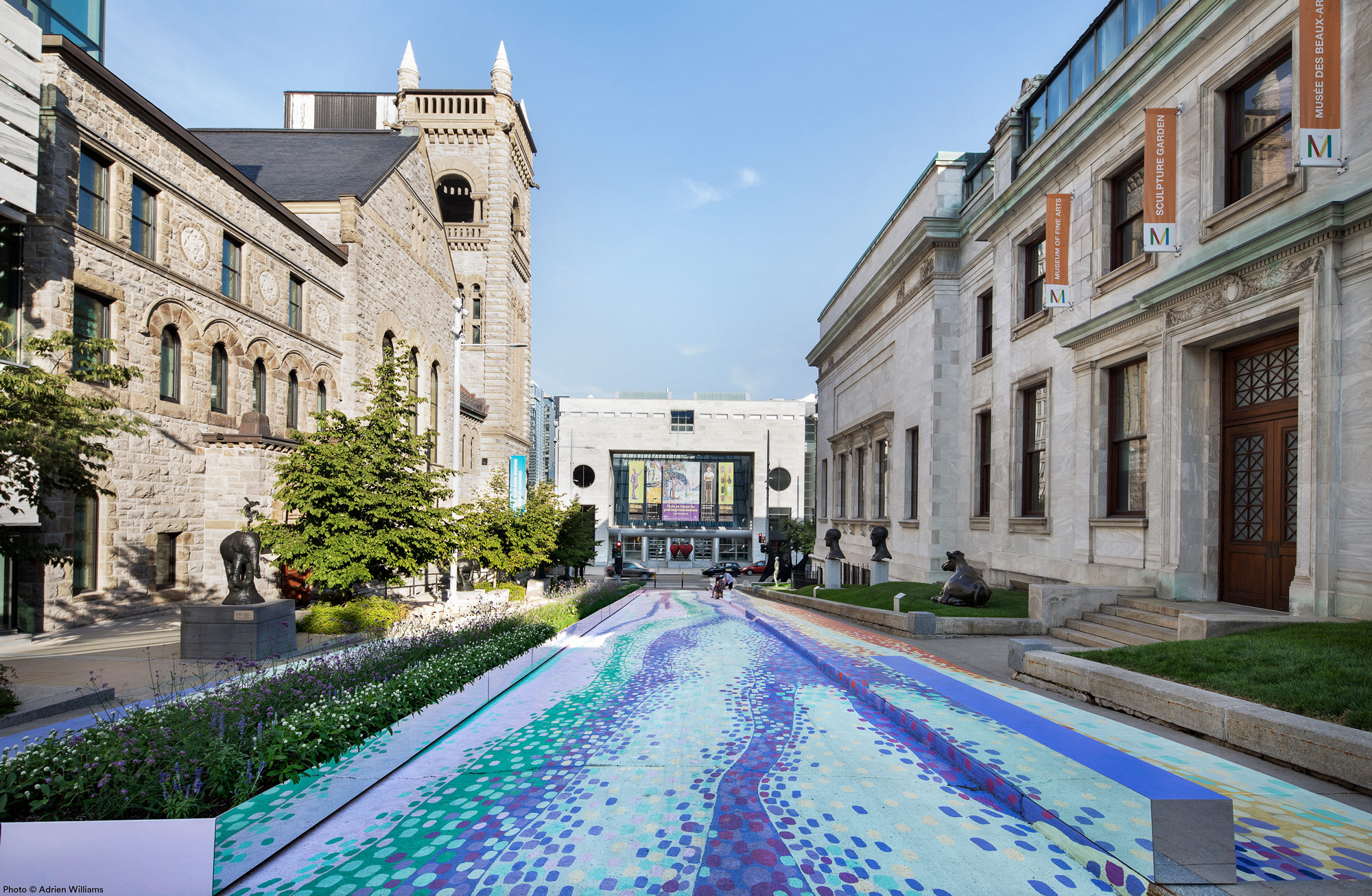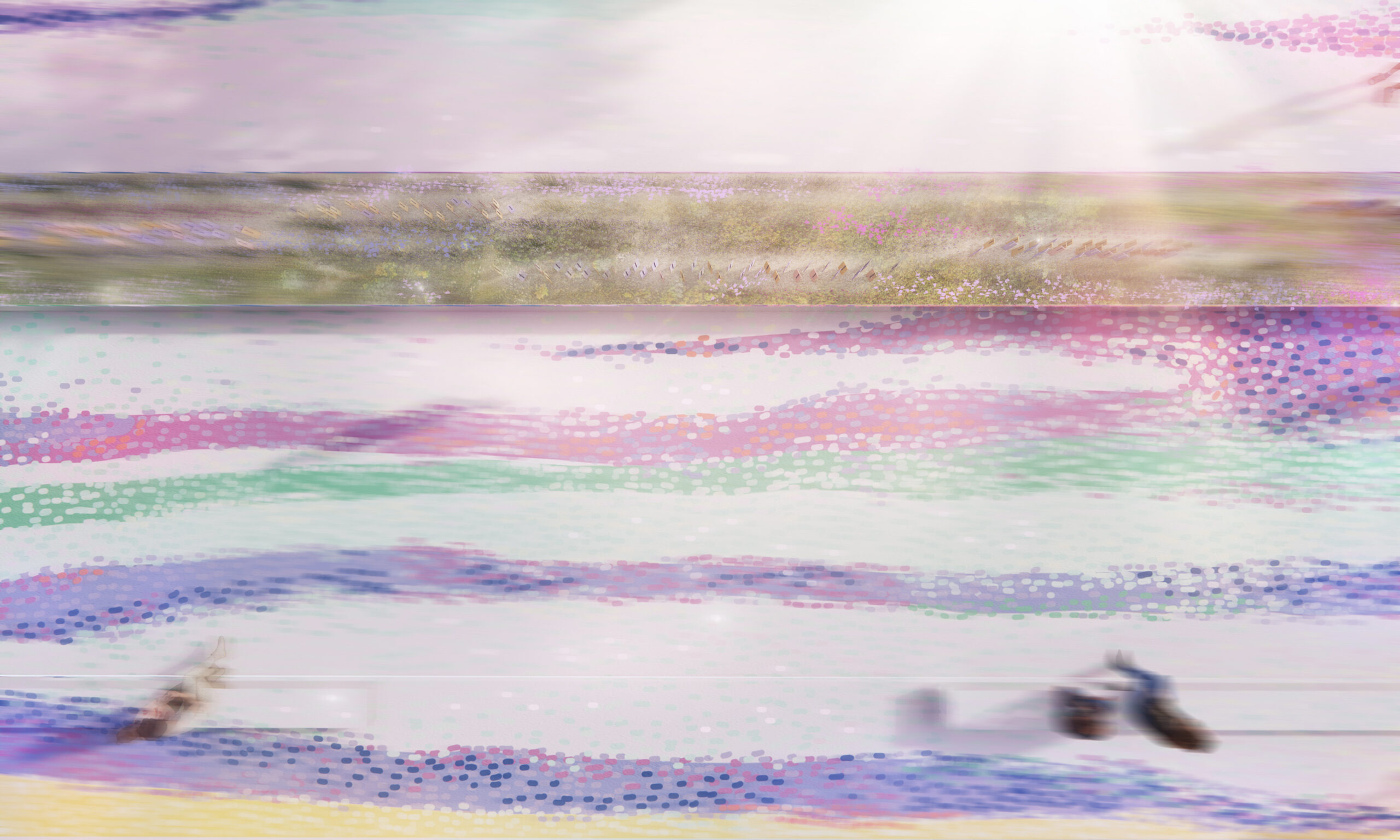 En se plongeant dans cet univers réfléchi et méthodique de coloris et de lumière, Voiliers s’inspire des reflets de l’océan très présents dans les toiles des peintres postimpressionistes. La place devient l’impression d’une surface miroitant des teintes vives et pastels. L’image reprend la technique de superposition des couleurs afin de créer des motifs de reflets en mouvement. Un grand jardin linéaire fait écho aux mouvements des vagues. Les végétaux choisis pour leurs boutons colorés apportent une dimension scintillante et dansante à l’installation.